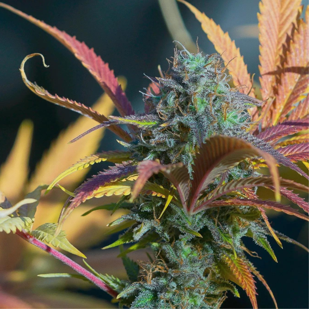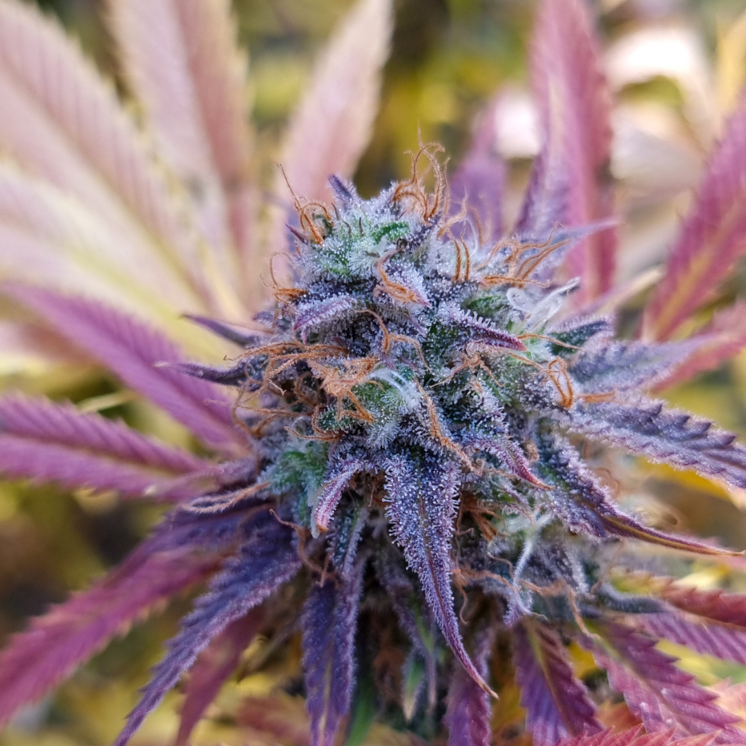 El clon de White Rhino lo hemos mantenido por más de 10 años, porque no hay nada actual que equipare el vigor y rendimiento de antaño. El resultado de esta cruza son plantas increíblemente anchas, robustas y resistentes a las adversidades. Las colas son impresionantemente largas y anchas. Mimosa añade colores hermosos, desde morados hasta rosados. En cuanto al perfil de terpenos, dominan los dulces tipo frutilla, junto con el piña de la mimosa,  aunque también hay olores más especiados para las narices más oldschool, que recordarán variedades noventeras tipo White Widow.